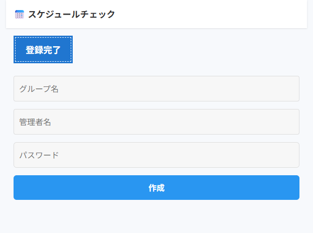 届いたメールに記載されたURLをクリックし、グループ名・管理者名・パスワードを設定して「作成」ボタンを押してください。