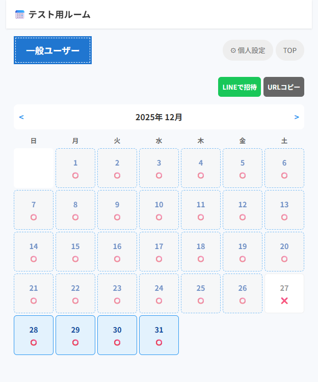 >日付をタップするだけで「⭕️ 参加」と「❌ 不参加」を切り替えることができます。